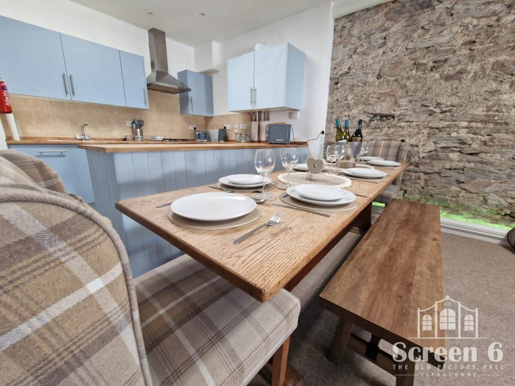 Beautiful refectory table with benches and captains chairs, comfortable seating for 8